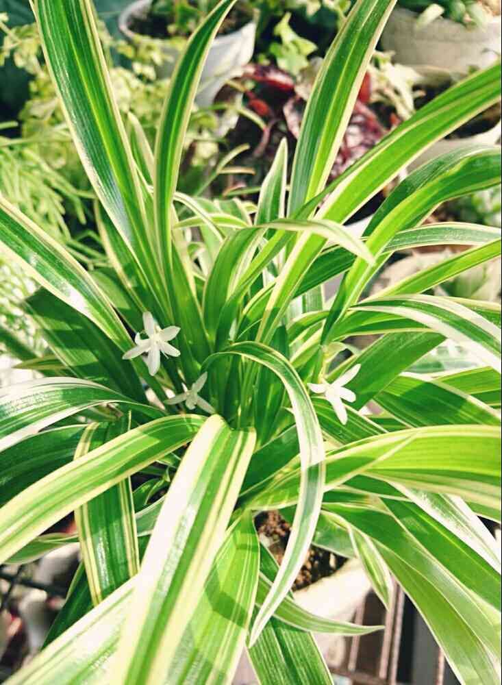 今朝のオリヅルラン、3つ同時にお花を咲かせてくれていました💗嬉しい😆