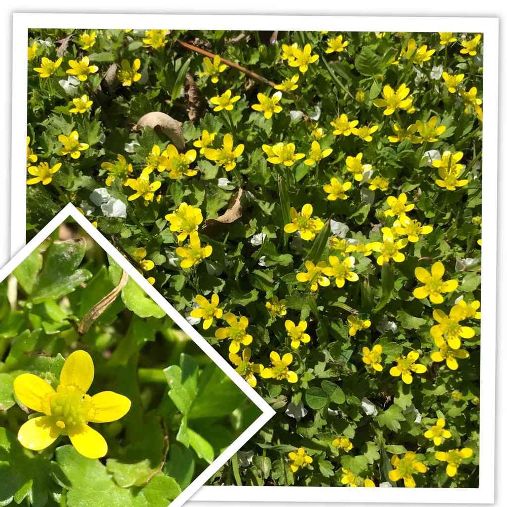 一見カタバミかと思ったが、それにしては密度が高く、花びらに光沢がある。花判定アプリによるとケキツネノボタン。キツネノボタンかも。