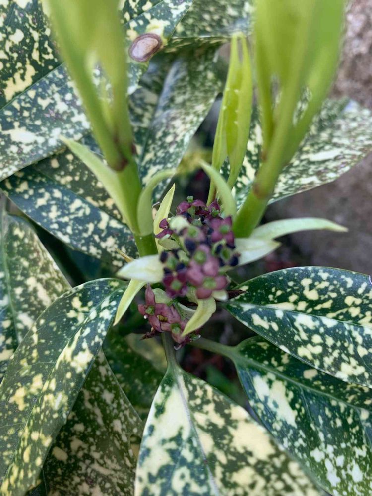 日影向け常緑低木 アオキ よーく見たら花咲いてました。地味だけどかわいい!