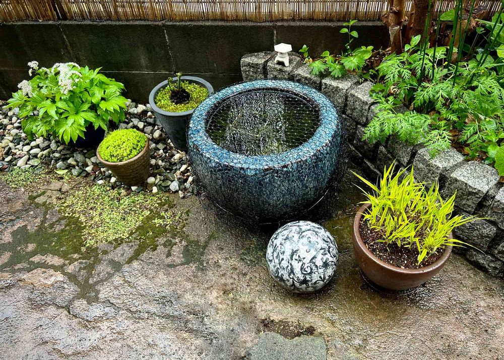 水鉢と苔と山野草、、いつもしっとりした空間です💧✨