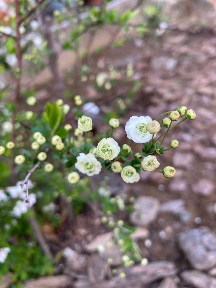 頂き物のうちの雪柳、よく見たら八重咲き❣️