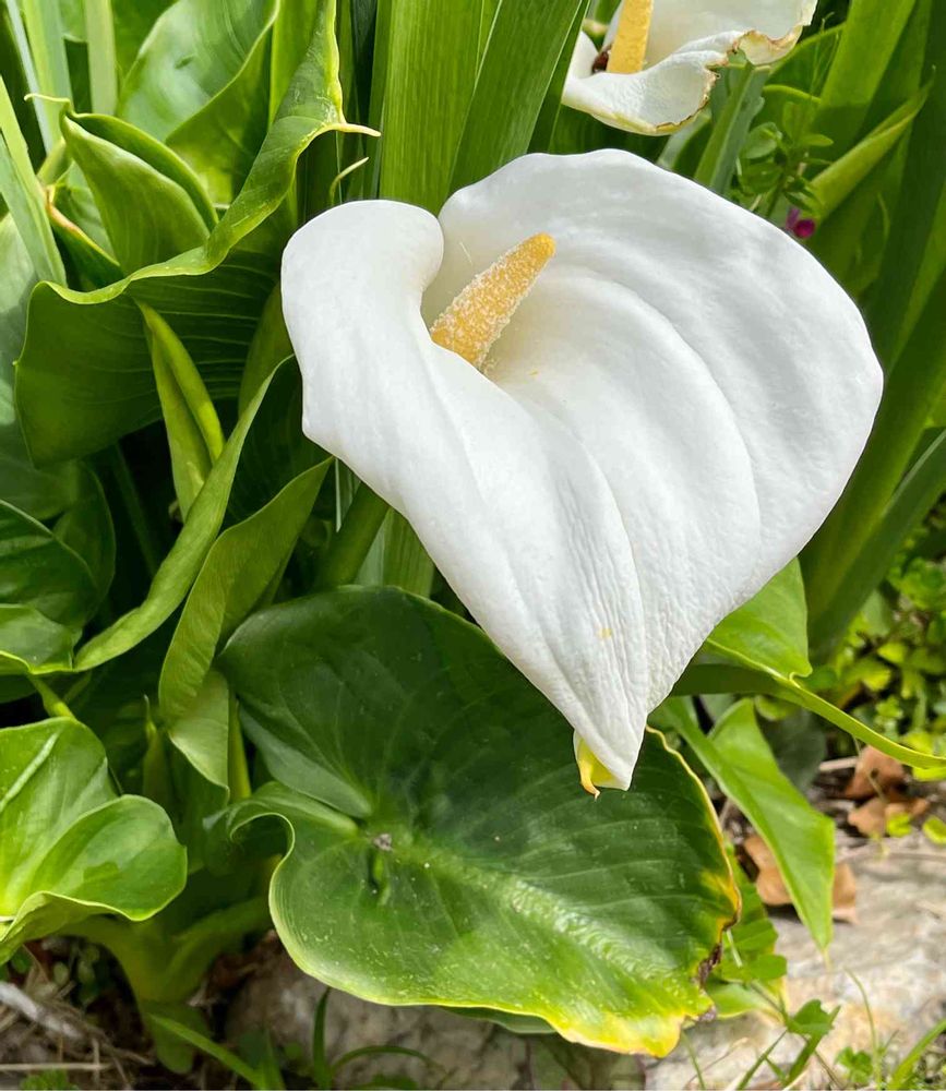 🍃出先のカフェの庭にはカラーが咲き始めていました。真っ白なガクが美しく大きく開いています。カラーの開花時期は通常6月〜7月。だから私はカラーがこの時期に咲いているのを見ると高知の春はいつも短いなぁ〜感じます。