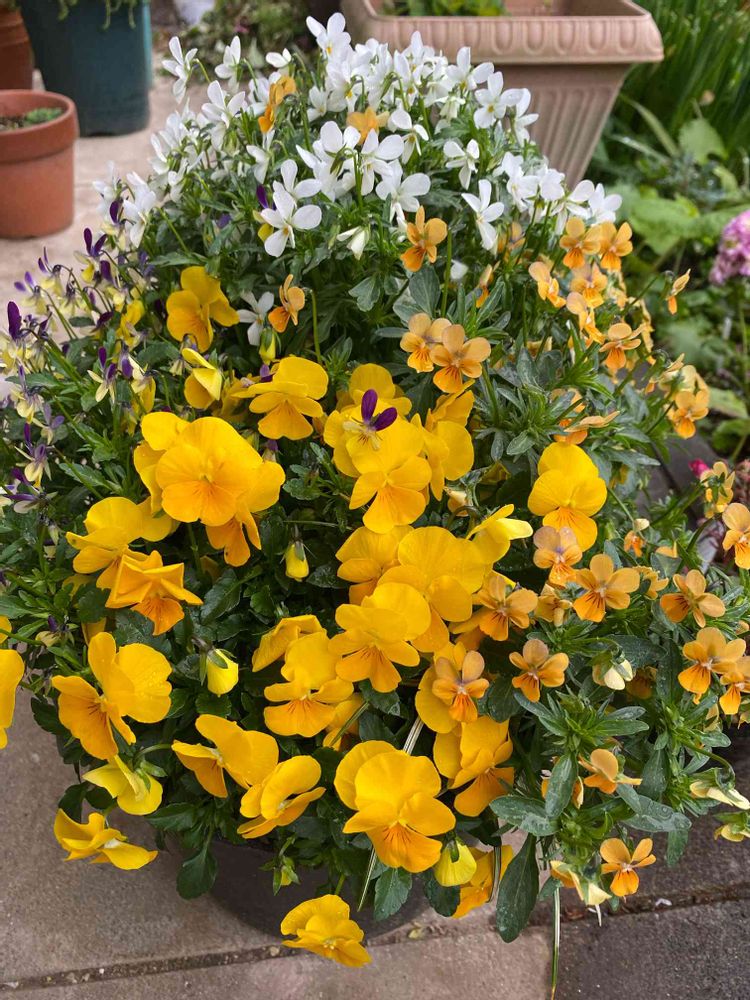 ビオラ&ミニビオラの寄せ植えがこんもりとしてきました。🌼💛🌼🤍🌼💜🌼🧡