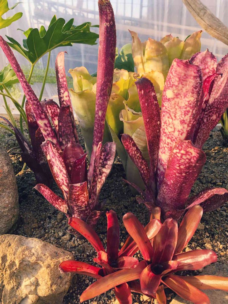 ビルベルギア・エクメアなどをビニールハウス内に植えてみました。徒長気味な子達ですが…カッコ良く成長して欲しいです😄
