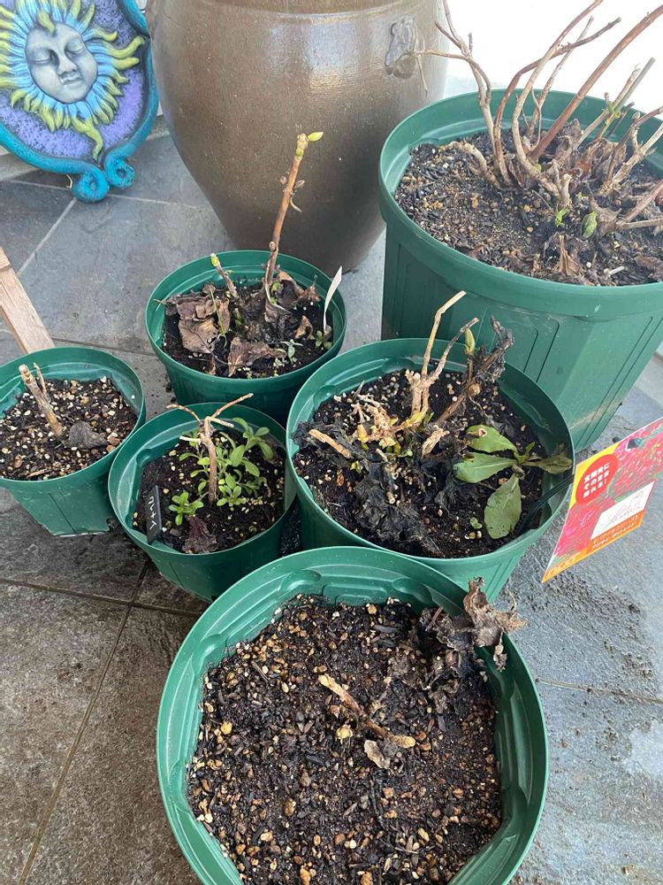 雪の中の鉢植え紫陽花は全て掘り出し、玄関先へ✨