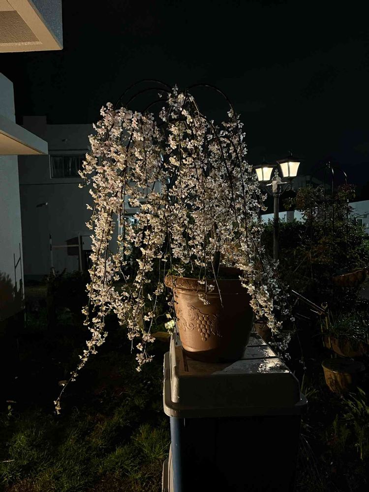 小さな庭,夜桜 枝垂れ桜,鉢植えの投稿画像