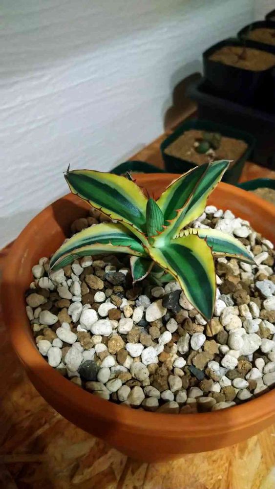 去年引越してこられたご近所さんにドライガーデン作られてる方がいて、娘と散歩ついでに見に行くと玄関先にいたので話しかけたら、あれよあれよと盛り上がりアガベ交換😆