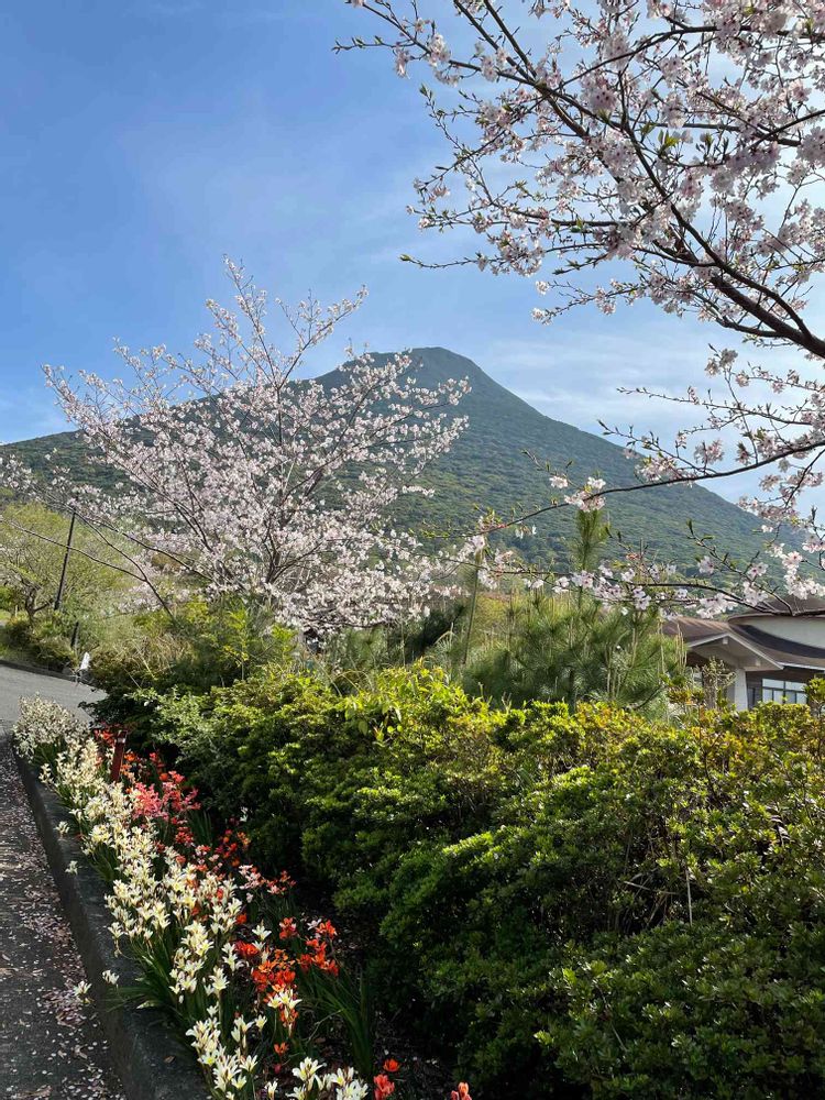 まだ🌸咲いていて この春も開聞岳と桜のコラボを見れて良かったです😃