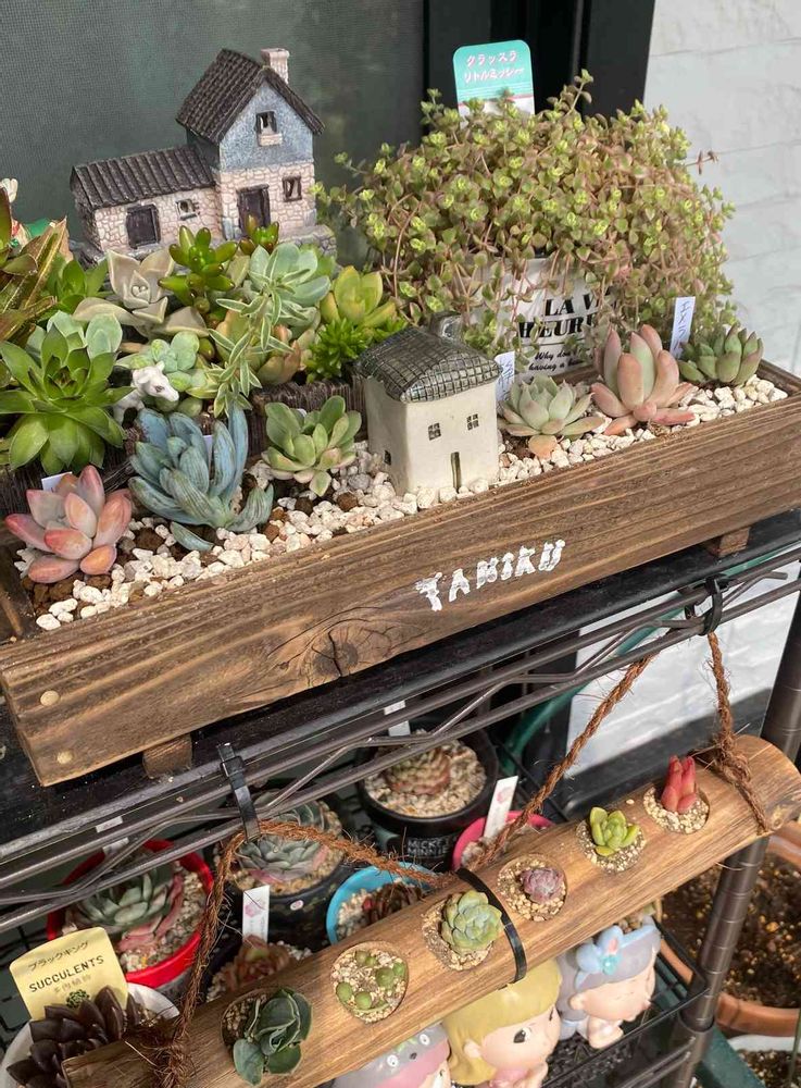 多肉植物のデコレーションすごく可愛いです。メルヘンティックな世界ですね。🐸