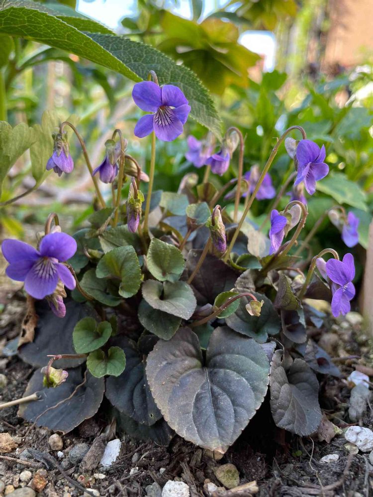 黒葉スミレ ちょっぴり暖かくなって開花です(∩´∀`∩)💕