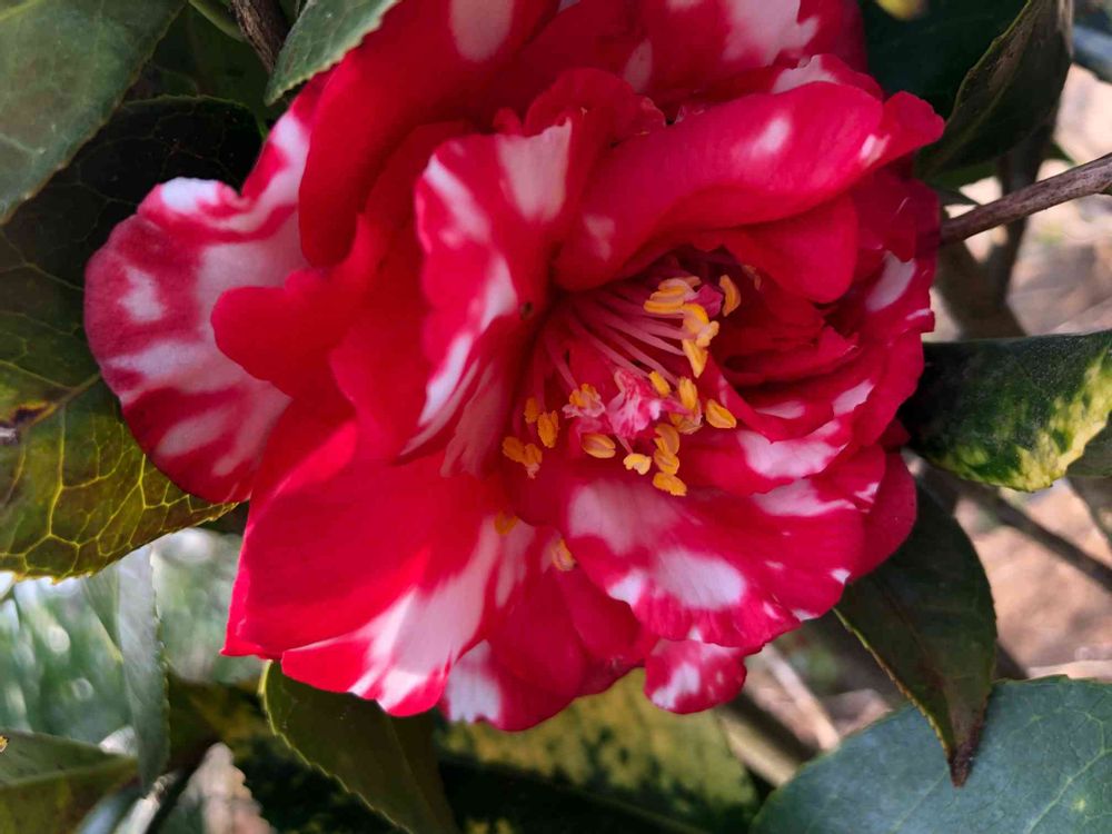 この椿さんね、実家から貰ってきたの。もう30年も前‼︎畑にお引越ししたから、拗ねたのね😔