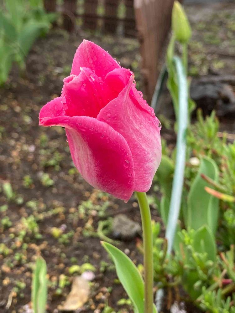 道路脇のついこの可愛い🌷チューリップに見とれていたら後ろからスピードあげた大型トラック🚚に大きな水溜まりの水を頭から引っ掛けられずぶ濡れになり( ´•_•。)💧