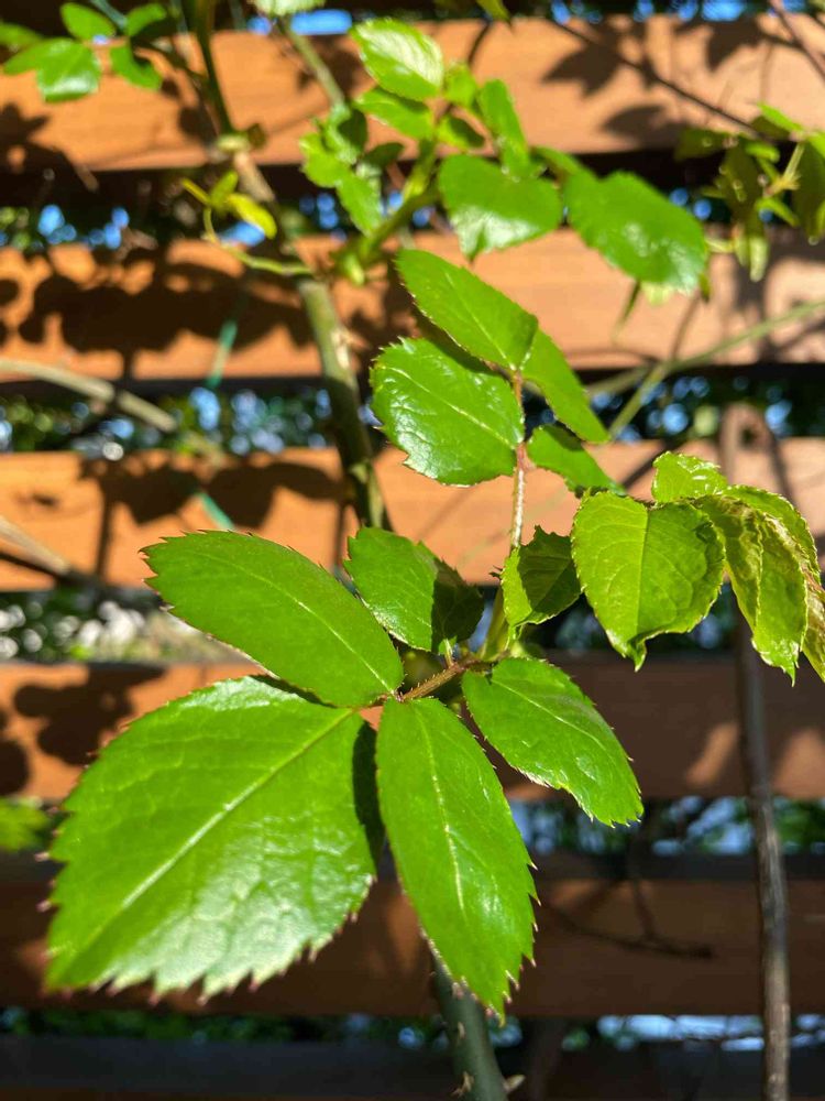 バラ『ギーサヴァア』の新緑です。