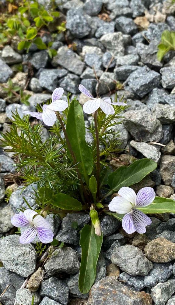こんな石ころばかりの所でも花を咲かせるスミレ