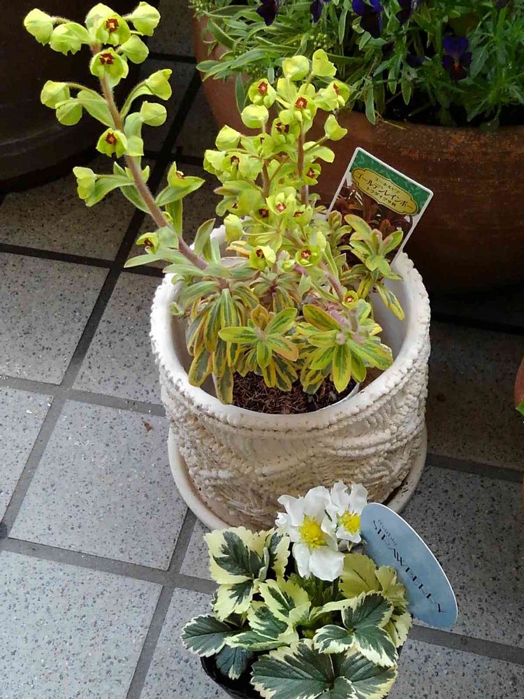 こなゆきさんのバルコニー/ベランダ,いちご苗,ユーフォルビア.の投稿画像