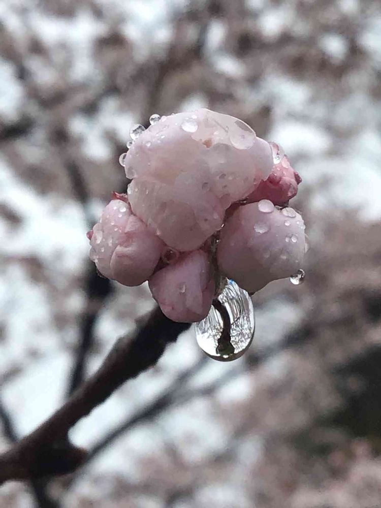 桜の蕾ちゃんに、雨の雫がついてて綺麗でした〜(∩´∀`∩)💕✨