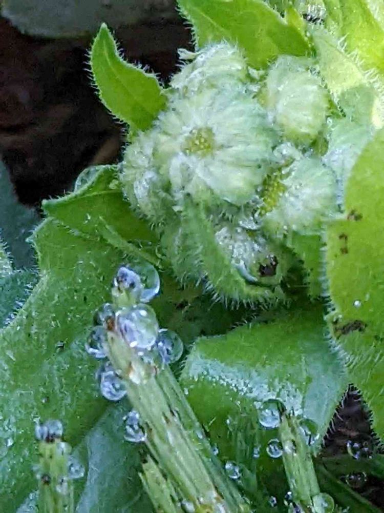 今朝は蕾に少し色が出て来たかしら〜のハルジオンを写しましたよ…😊🤳