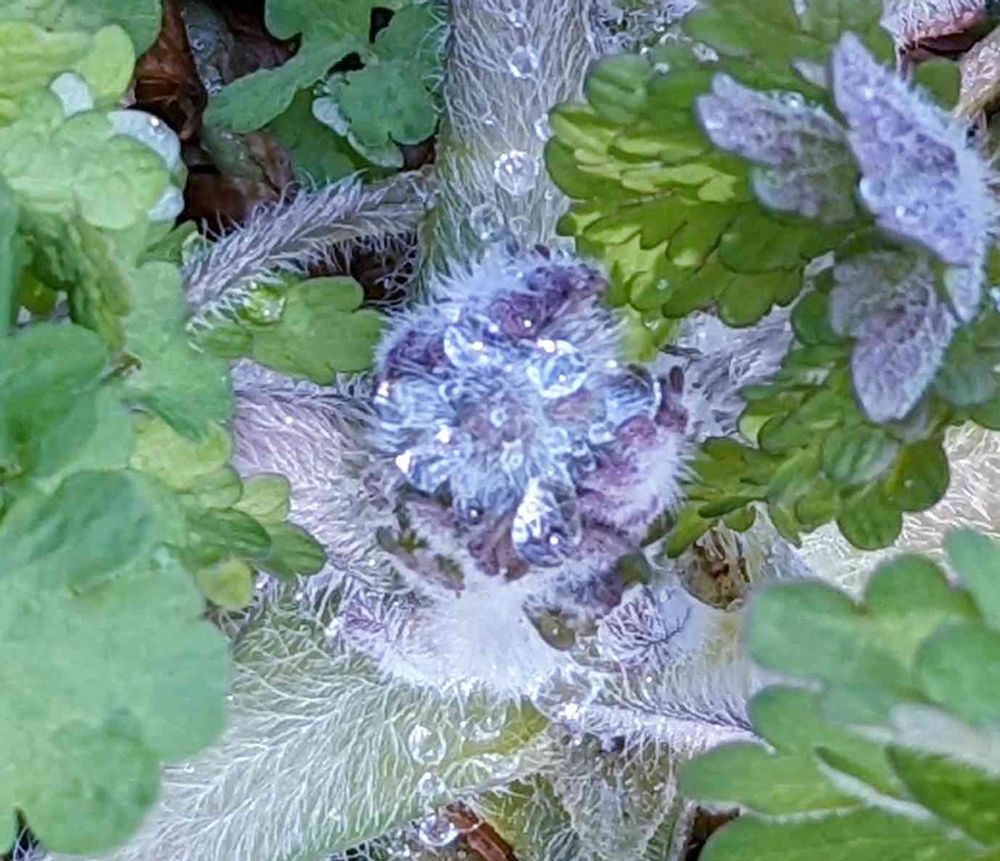 蕾が盛り上がって水滴も私も蕾よ…という顔をして乗っかっていました