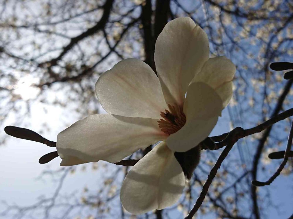 大きなコブシの花だね〜。満開とは嬉しいですね。