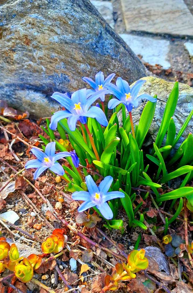 庭のいたるところに植え込んであるチオノドクサが春を告げています。