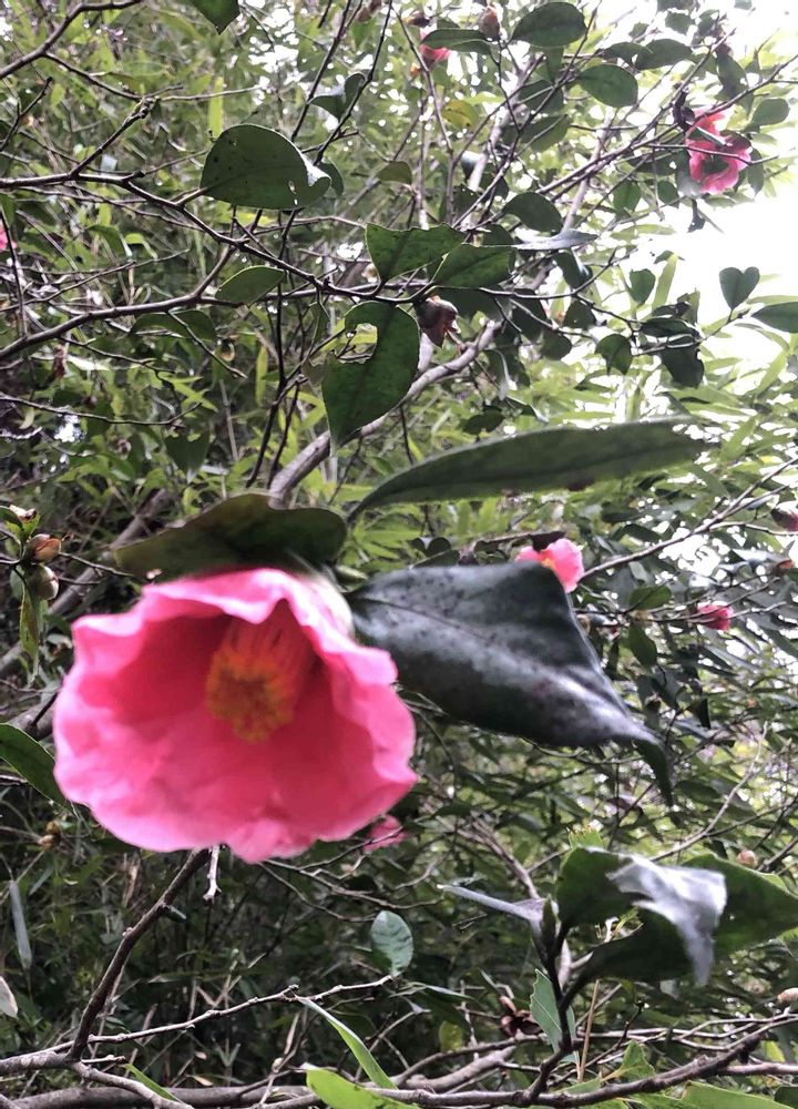 花がない時期の椿の木は、緑の艶やかな葉が見どころだろう。