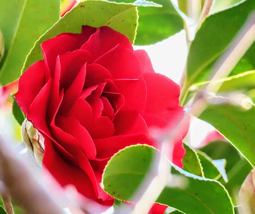 実家の庭木で、父の自慢の椿「薩摩紅」。
