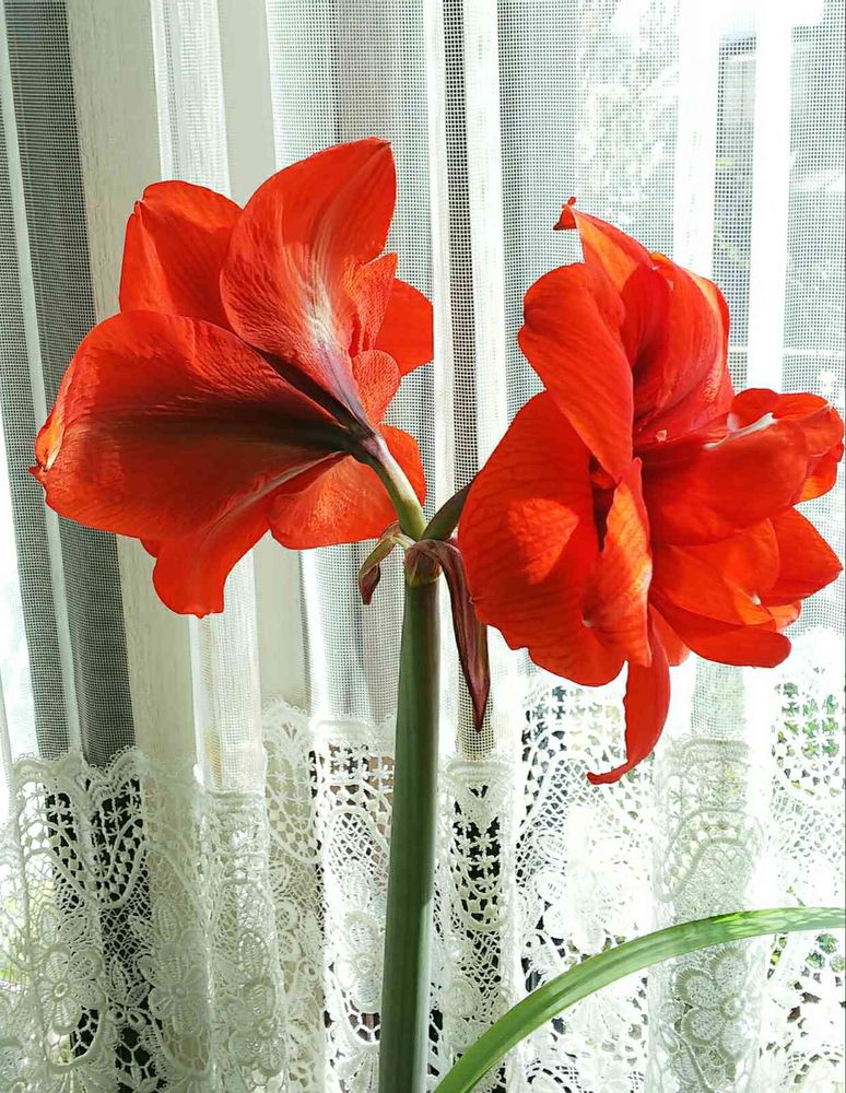 窓辺,アマリリスダブルキング,スマホ撮影の投稿画像