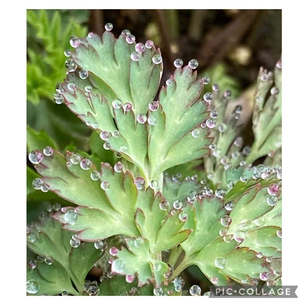 庭に生えてきた葉のギザギザに小さな小さな水滴がキラキラしてました⭐︎