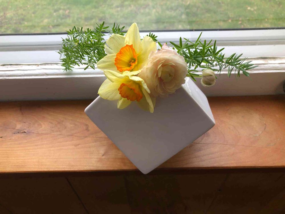 花材:スイセン、 ラナンキュラス、アスパラガス・スプリンゲリー