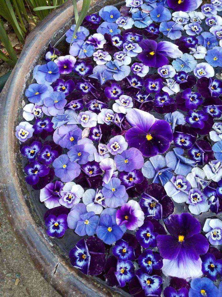 ビオラや、パンジーの花手水も素敵💜💜💜