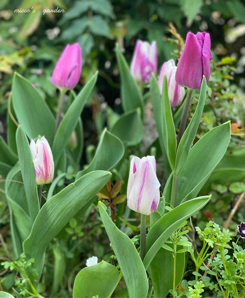 可愛いチューリップさんがいっぱい咲いててますね〜💜💜💜