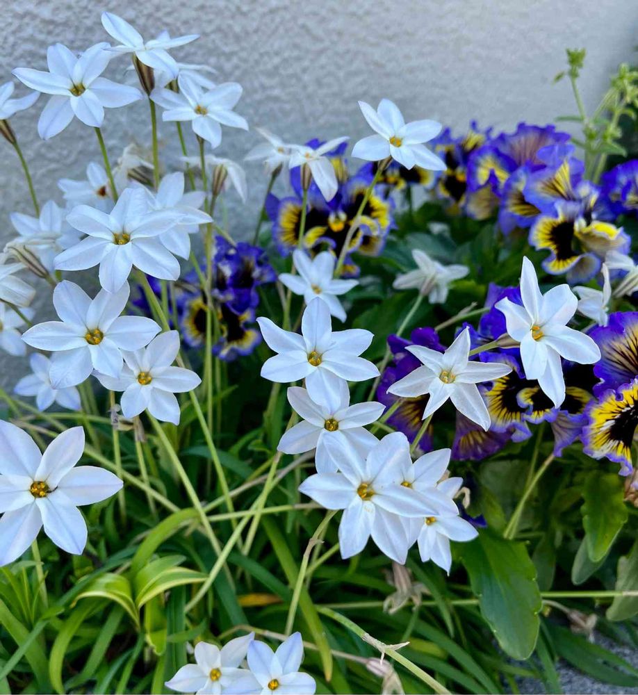 鮮やかなパンジーの色と、スッキリとしたハナニラのコラボがとてもステキですね💕