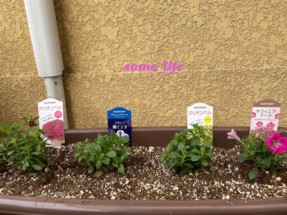 サントリーフラワーズ公式アンバサダーの応募のお礼として届いた花苗を植えつけました😊