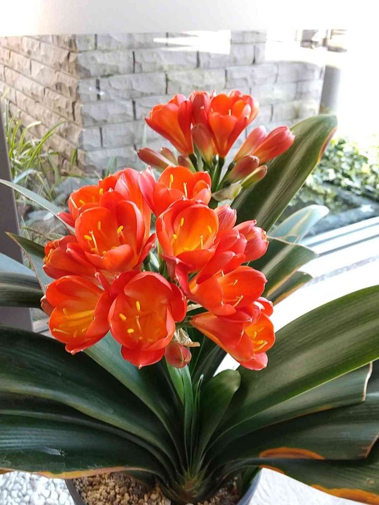 マンションのエントランスの君子蘭が今年も立派に咲きました❣️
