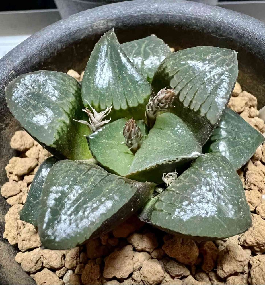 家のハオルチア軍団やっと冬からのお目覚め、まだ艶々してきません😅