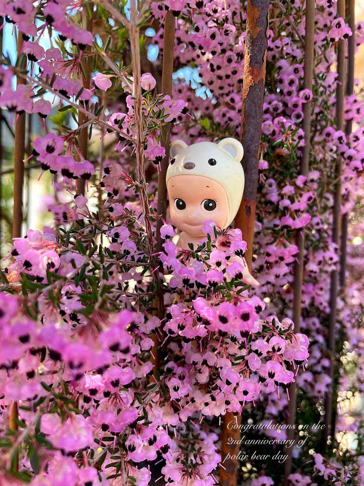 ジャノメエリカさん長く咲いてくれてます お花の中からシロクマのソニーエンジェルくんが_( ˙꒳˙ _ )チョコン✧︎