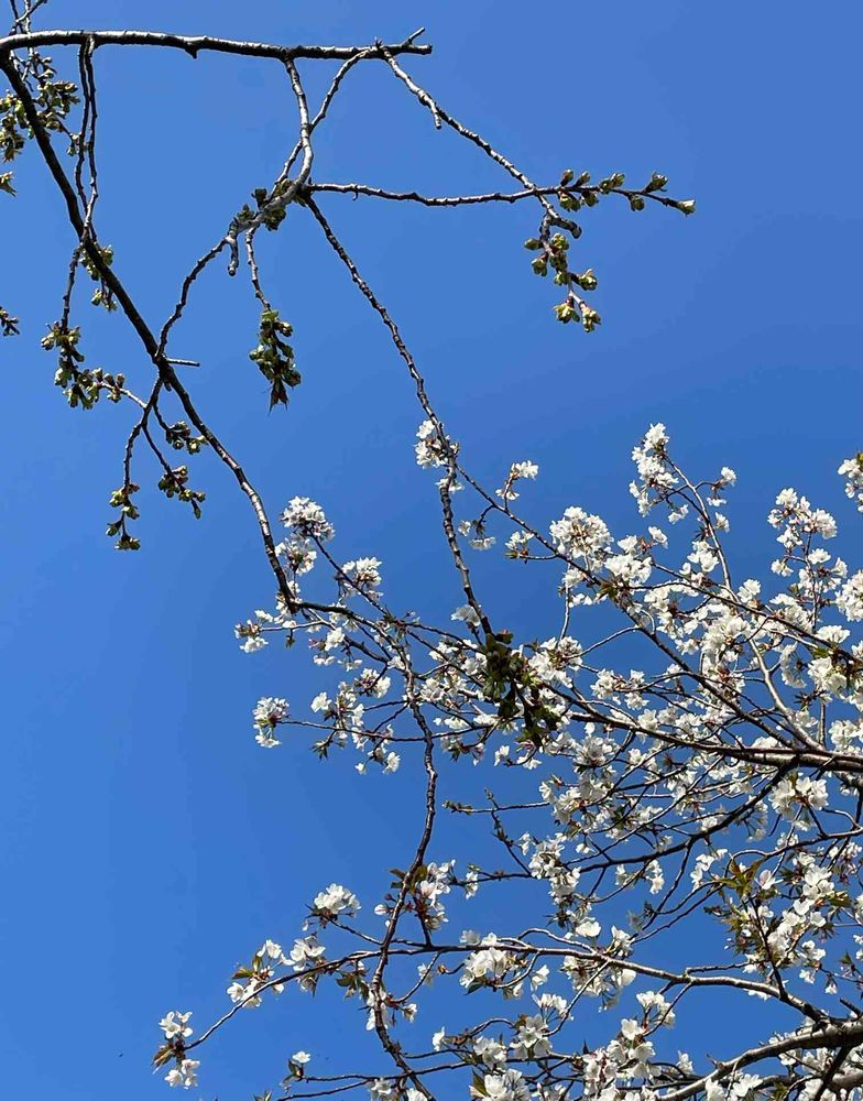 ソメイヨシノ(右)から御衣黄桜(左上)