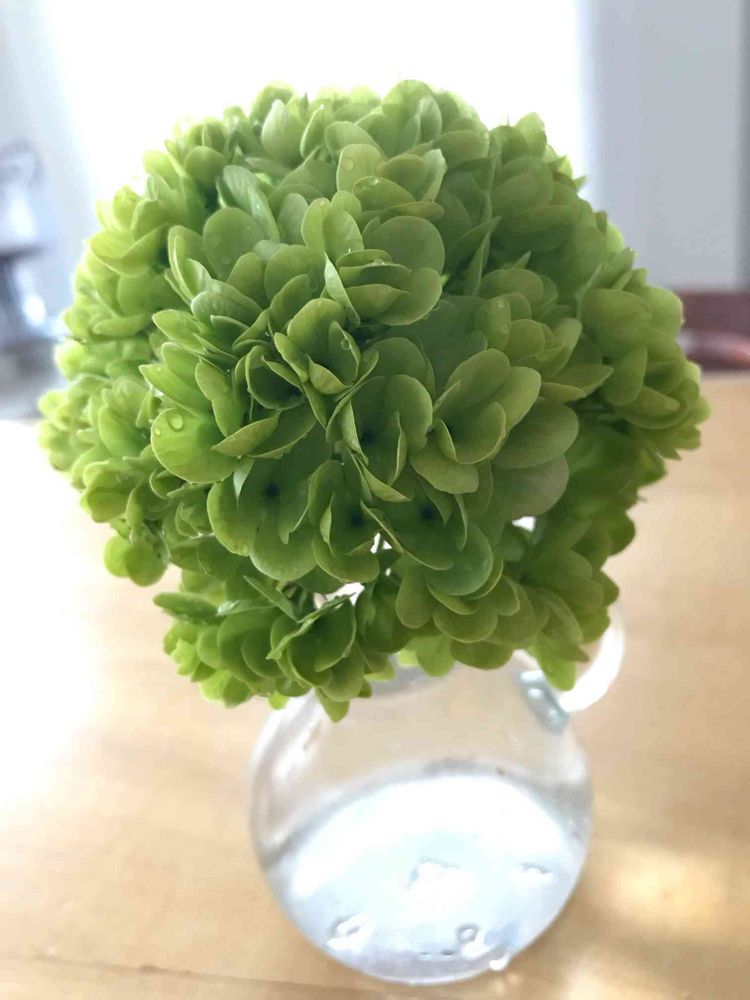 秋にお迎えした大輪ガマズミ ステリーレちゃんのポンポン状のお花が可愛いなぁ💚と眺めながら水撒きしておりましたら、ポンポンにお水をかけてしまって首で折れてしまいました😢💦💦