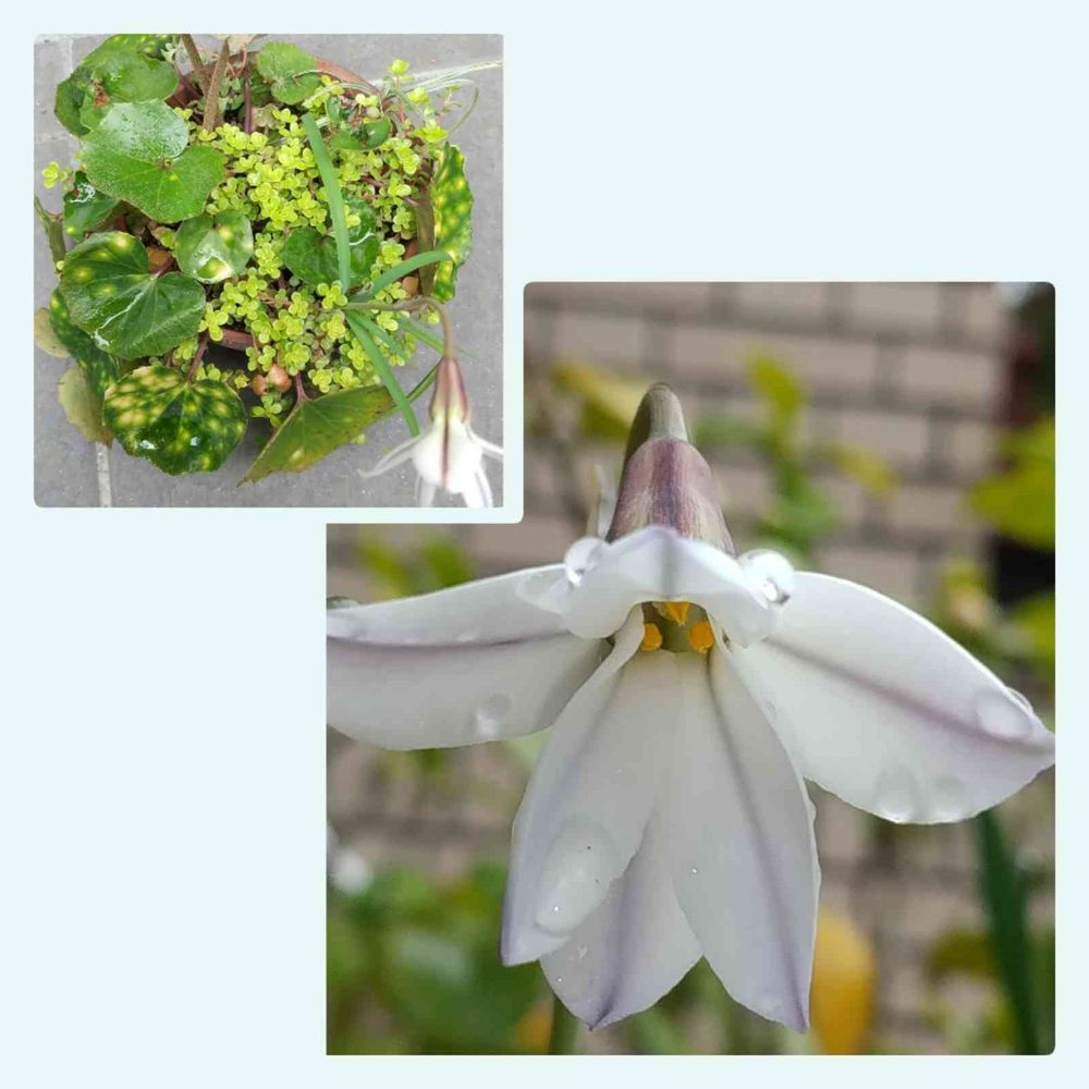 ハナニラ✨💞一輪だけでも可愛いね✨💞セダムとツワブキの葉っぱ🌱💚良いですね❤️