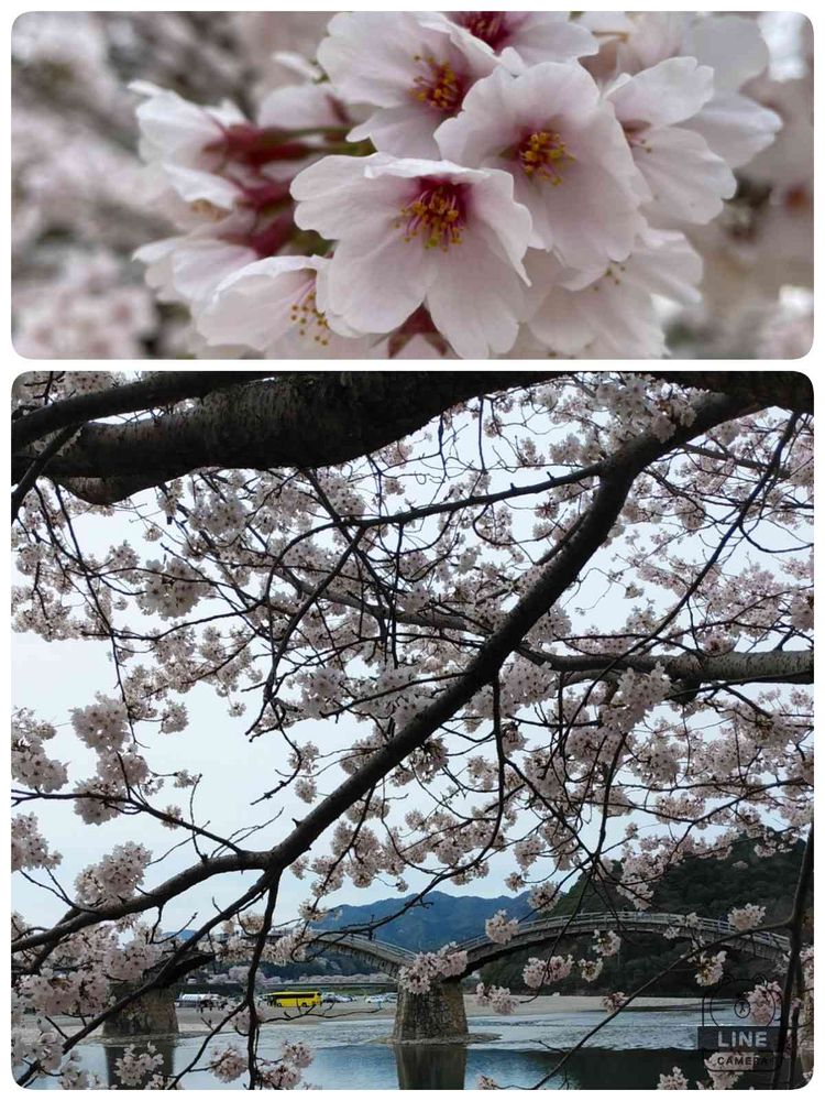 5連の錦帯橋と周辺の桜がおりなす景観は素晴らしいです✨✨