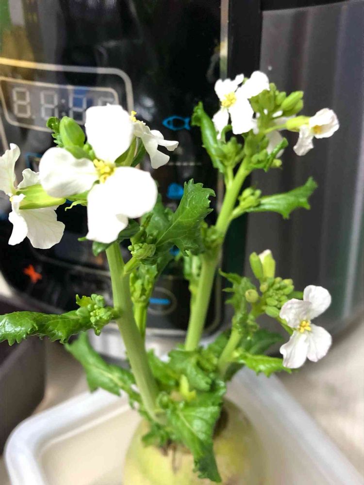 普通の白い大根は、後ろの電気圧力鍋で調理すると早く柔らかくなります。