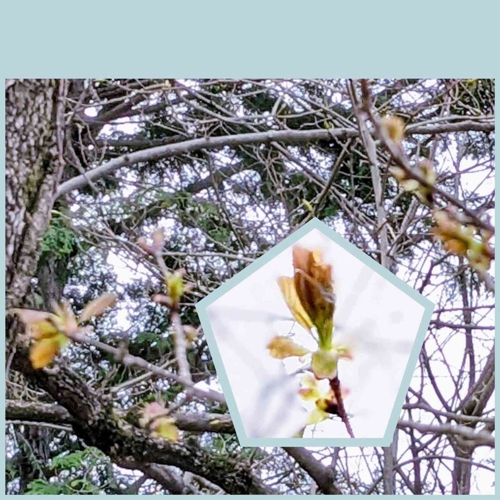 昨年の写真を見ると 今日ぐらいには木全体に咲いていたみたいなので 今年は少し遅いですね