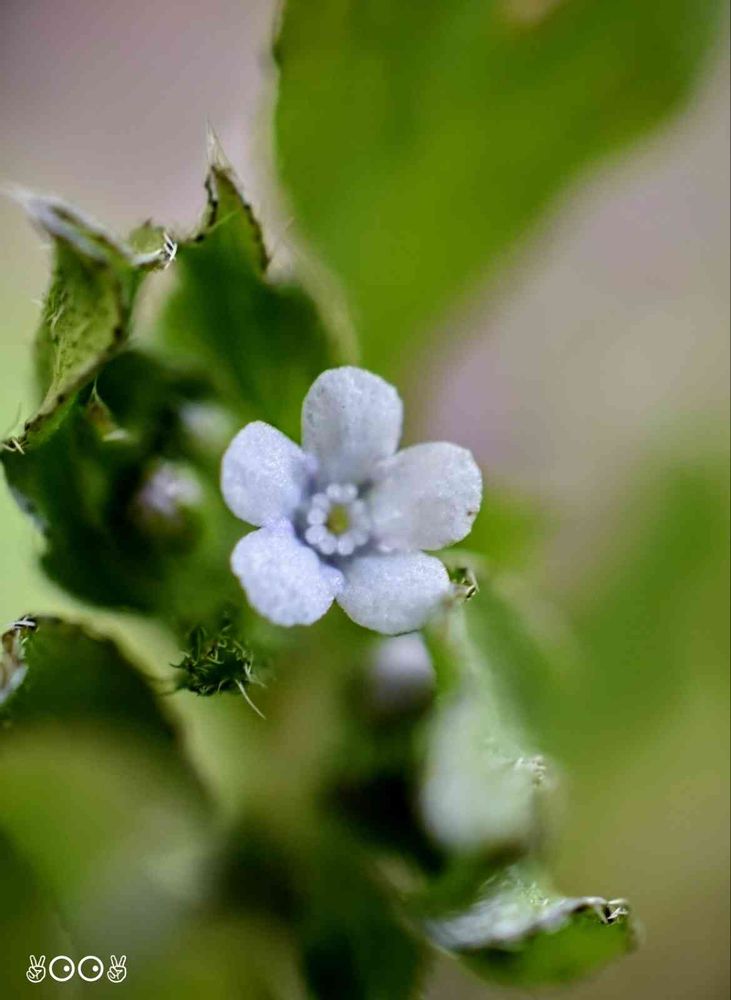 花は 大きさ(2㎜)も 形も キュウリグサと 瓜二つ・・・だが 色は白い。(正確には淡青色)