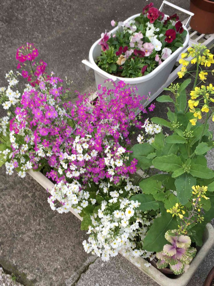 ビオラの花🌸種蒔きしたのがなんとかお花が咲きました。三陸菜花のお花 サクラソウ🎶