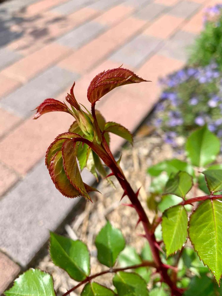 赤みが縁取るピカピカの若い葉っぱがきれいですよね〜🌿