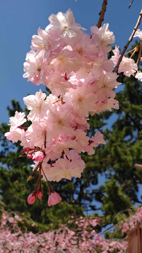 青空に桜が映えて