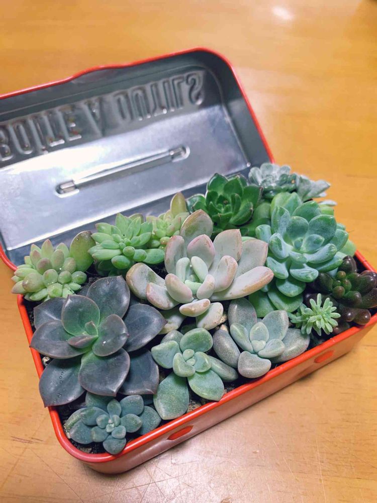 セリアの道具箱に寄せ植えしました。
