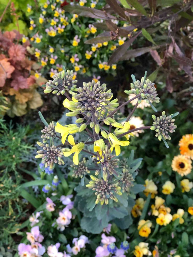 初めて植えたハボタン、お花ってどんなかな?という好奇心で、ビョーンとのびた花茎を切らずにいたらこんなお花が今日咲きました!