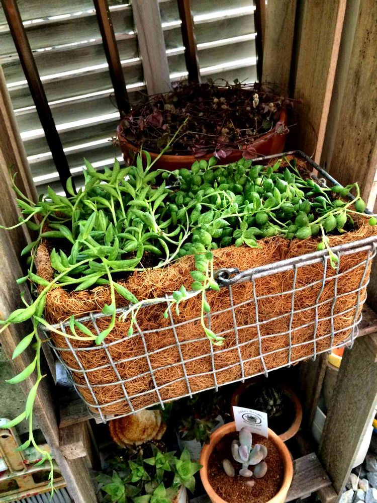 ミカヅキさんとアーモンドさん。ゆらゆら系同士仲良くワイヤーバスケットに入りました。すくすく育ってね(^^)