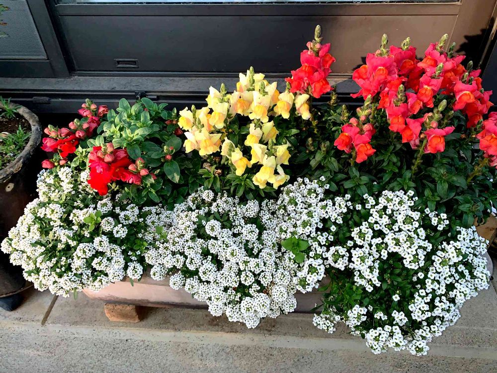 プランターに金魚草・アリッサムの寄せ植え〜🎶💖